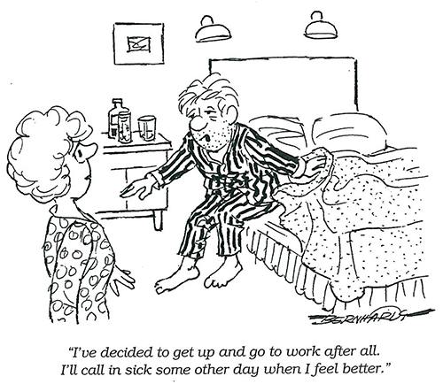 Even though allergies are not an acute illness, they can really take a number on the body, especially if one’s body is tired from working too hard. Symptoms can be as light as a sniffle, and severe as a high fever, but any level of severity can hinder one’s ability to work. Take a sick day!