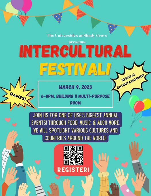 On March 9th, the Universities at Shady Grove held their annual Intercultural Festival for students, staff, faculty, and their families. This event is one of USG’s most popular ones as we got to celebrate and learn about different cultures.