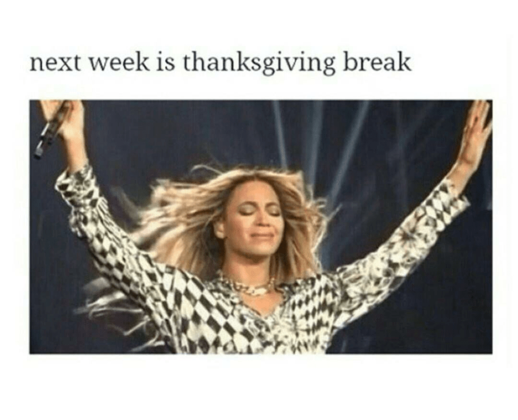 Hi, Everyone, and Happy Tuesday. Midterms have finally wrapped up for most, and Thanksgiving break starts in a week, so it’s time to unwind, take in the season change, and plan for upcoming fun activities!
