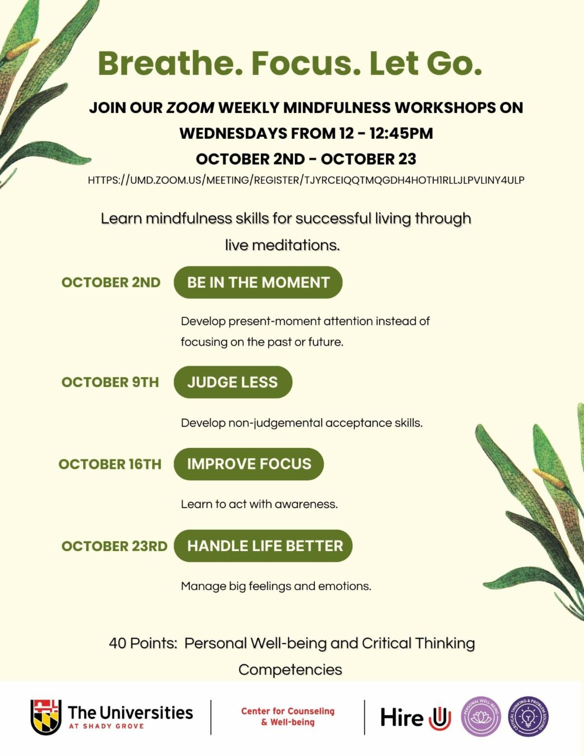 Recreation & Well-Being Services at Shady Grove: recreation & well-being services provided; wellness coaching, exercise courses, and mindfulness workshops.