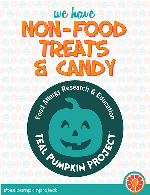 I recently started participating in the Teal Pumpkin Project, a movement offering alternative options (stickers, pencils, toys) for children with food allergies when trick-or-treating started by the Food Allergy Research and Education (FARE); the movement also works for children with diabetes, Celiac disease, or other restrictions.