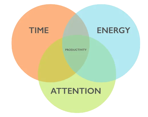 There are different definitions of productivity; after looking at all the ways it is defined, the objectives of productivity are quantity, quality, and efficiency. Productivity, in essence, can be described as a meeting of time, attention, and energy and are the essential factors behind the objectives: setting and spending time for that task, paying needed attention to the task, and putting energy into the task- getting good results with little effort wasted. Productivity gets closer to a goal, sustaining a helpful and meaningful routine, making it optimal productivity.